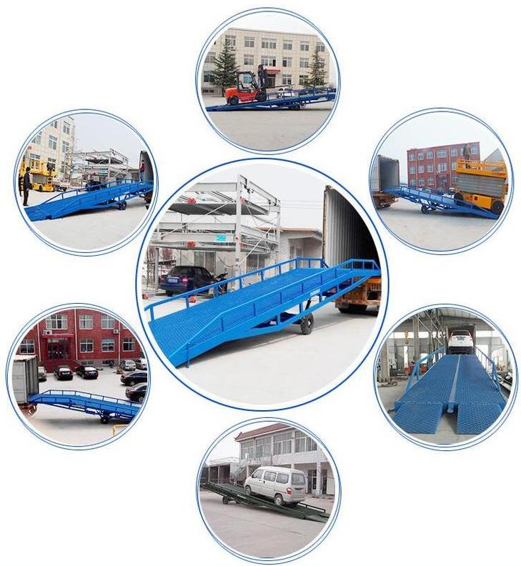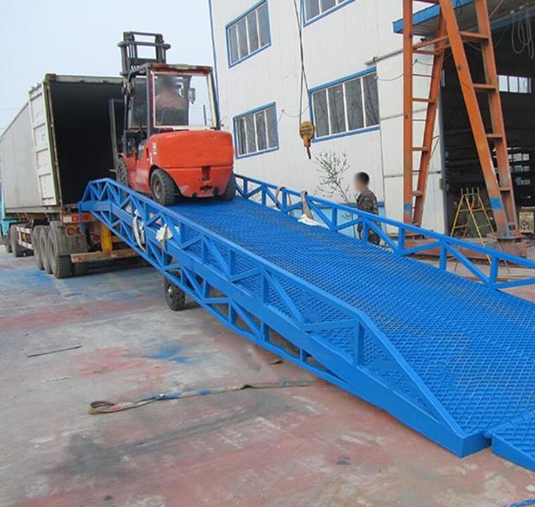 威海登車橋-威海移動登車橋-集裝箱裝卸貨平臺-液壓裝車橋。移動登車橋采用人工液壓動力,不需外接動力電源,只需單人操作,就可以實現貨物的安全快速裝卸,節省時間和人力資源。它可使企業減少大量勞動力,成倍提高裝卸作業效率,加快貨物流通速度,獲取更大經濟效益。移動登車橋被廣泛應用于無裝卸設備的貨臺及流動裝卸場所,是與叉車配合使用的貨物裝卸輔助設備。并可以根據不同的車型及裝車過程車廂的高度變化進行調節。廣泛應用于工廠運輸備料、物流集散中心運輸貨物、港口碼頭上下集裝箱,隨著工礦企業的發展移動式液壓登車橋越來越被廣泛的應用到各行各業卸貨中。